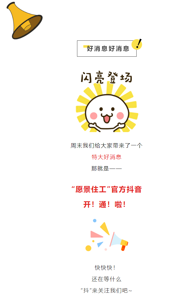 愿景住工-官宣!我司抖音號正式開通,敬請關注!