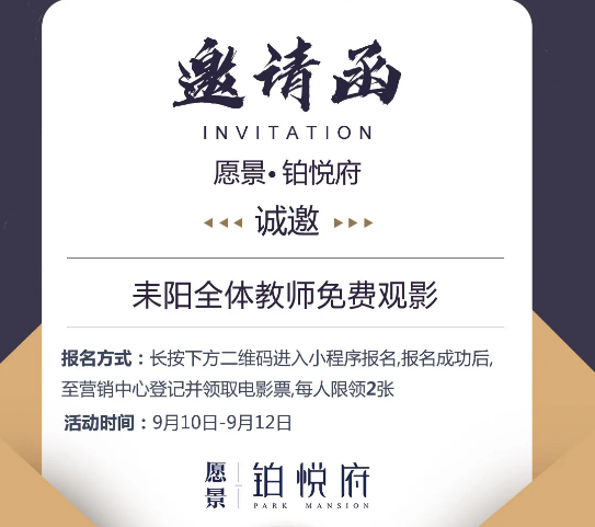 教師節(jié)來臨之際,愿景·鉑悅府舉辦邀請耒陽全體教師免費觀影活動。