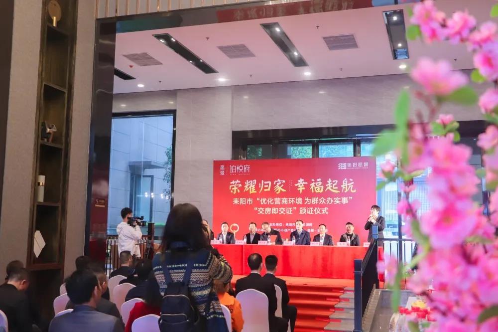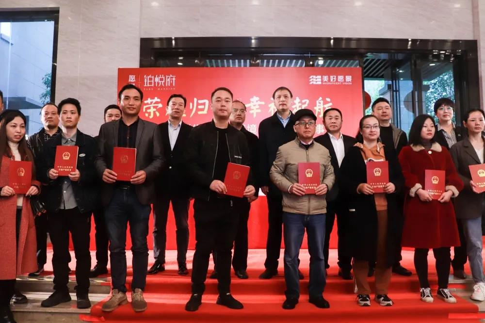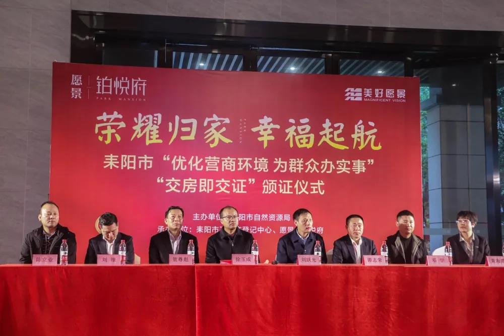 榮耀歸家,幸福啟航!11月3日,耒陽市“優化營商環境,為群眾辦實事”“交房即交證”首發頒證儀式在愿景·鉑悅府營銷中心隆重舉行。